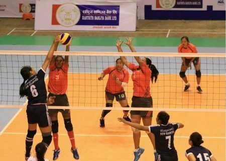 काठमाडौं । एपीएफ क्लबले काठमाडौंमा जारी पाँचौ संकरणको आरबीबी एनभीए राष्ट्रिय महिला-पुरुष क्लब भलिबल च्याम्पियनसिपको