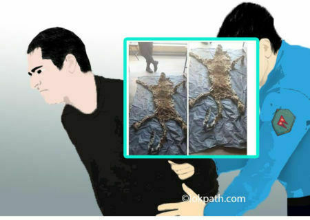 काठमाडौं – ललितपुर महानगरपालिका वडा नं ९ शंखमुलबाट चितुवाको जस्तो देखिने वन्यजन्तुको छाला सहित एक