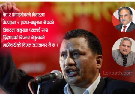 वैद्य र प्रचण्डबीचको विवादमा वैद्यपक्षमा र प्रचण्ड–बाबुराम बीचको विवादमा बाबुराम पक्षलाई साथ दिँदैआएको बिप्लव नेतृत्वको