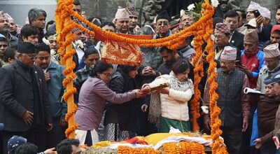 काठमाडौं । राजकीय सम्मानका साथ पूर्वउपप्रधान एवं अर्थमन्त्री भरतमोहन अधिकारीको पशुपति आर्यघाटमा आज (आइतवार)अन्त्येष्टि गरिएको