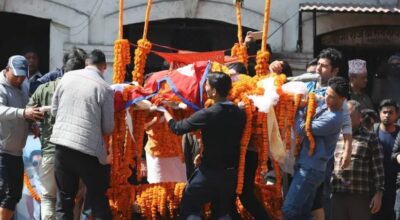 पोखरा । हेलिकप्टर दुर्घटनामा परि निधन भएका संस्कृति, पर्यटन तथा नागरिक उड्डयनमन्त्री रवीन्द्र अधिकारीको पार्थिव
