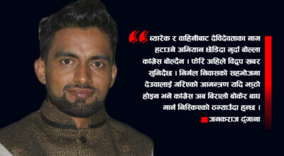 जनकराज ढुंगाना (कालु)नेपाली कांग्रेसमा अथर्व वेदमा उल्लेख गरिएको जस्तो ‘अभिवर्धतां पयसाभी राष्ट्रेण वर्धताम्’ जपको अपेक्षा