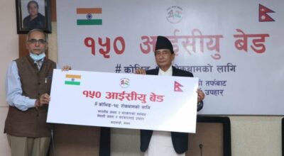 काठमाडौं । भारतले नेपाललाई १ सय ५० आईसीयू बेड सहयोग गरेको छ । भारतले नेपालसँग