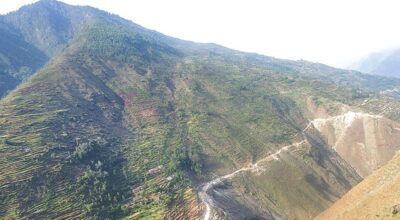 धनगढी–सडक कालोपत्र गर्न गिटी बिच्छ्याइएको छ, रोलिङसमेत भइसकेको छ । तर, सडकभरि रूखैरूख छन् ।