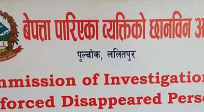 काठमाडौं । बेपत्ता पारिएका व्यक्तिको छानबिन आयोगले पीडित परिवारलाई परिचयपत्र उपलब्ध गराउन र कारवाहीका लागि