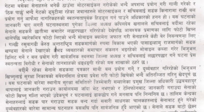 कास्की– पोखरा महानगरपालिका २३ भदौरेतामागी घर भई हाल शान्तिनगर बस्ने १७ वर्षीया किशोरी बलात्कृत भएकी
