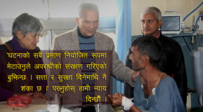 काठमाडौं । बलात्कारपछि हत्या भएकी कञ्चनपुरी १३ वर्षीया बालिका निर्मला पन्तका बुवा यज्ञराज पन्तलाई नयाँ