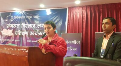 पोखरा–देशव्यापी संगठन विस्तारको कार्यक्रम अन्तरगत विवेकशील साझा पार्टीले पोखरामा प्रदेशस्तरिय प्रशिक्षण कार्यक्रम गरेको छ ।