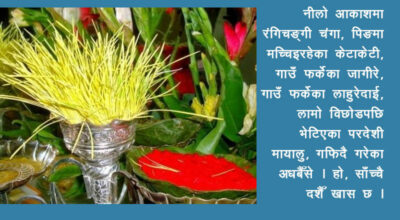 दशैँको माहोल छ । सबैजना खुसी छन् । वर्षौंपछि विदेशबाट घर आएको छोरालाई अङ्कमाल गर्न