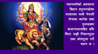 काठमाडौं । बडादशैँको नवौँ दिन महानवमी पर्व । आज देशभर शक्तिस्वरूपा दुर्गा भवानीको पूजाआराधना गरी