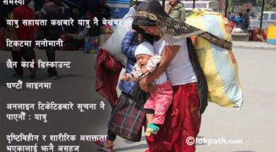काठमाडौं । नयाँ बसपार्कमा टिकट काट्ने र घर जाने यात्रुहरुको बाक्लो भिड छ । टिकट काउण्टरमा