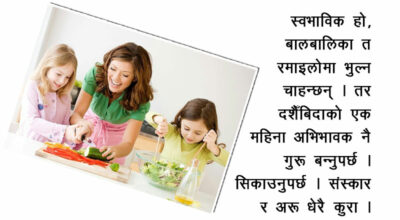 दशैँको तिहार र छठको लामो बिदा शुरु भइसक्यो । अबको करिब एक महिना स्कुल जाने