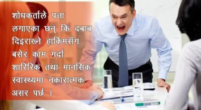 तपाई कुनै नोकरीमा आवद्ध हुनुहुन्छ ? तपाईको कार्यालय प्रमुखले तपाईसँग राम्रो व्यवहार गर्नुहुन्छ ? क्वार्टर