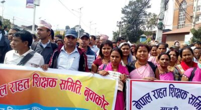 काठमाडौं । राहत शिक्षकहरुले स्थायी गर्न माग गर्दै काठमाडौंमा सरकारविरुद्ध प्रदर्शन गरेका छन् । देशभरका