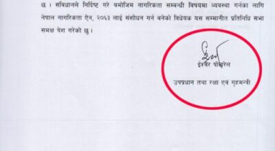 काठमाडौं – सरकारले संसदमा प्रस्तुत गरेको नेपाल नागरिकता ऐन, २०६३ लाई संशोधन गर्न बनेको विधेयक