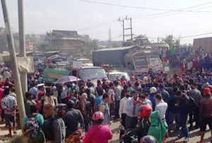 काठमाडौं । कलंकीको ढुंगेअड्डामा स्थानीयबासिन्दाले प्रदर्शन गरेका छन् । कंलकी–नागढुंगा सडक खण्डका स्थानीयबासिन्दाले ढुंगेअड्डामा प्लेडकार्डसहित