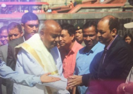 काठमाडौँ – बिहानै उनी पशुपति पुगे । मूल भट्ट रावल गणेशलाई भेटे । केहीबेर कर्नाटकामा