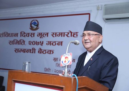 काठमाडौं । प्रधानमन्त्री केपी शर्मा ओलीले संविधान दिवशलाई जनताको दिवश बनाउनु पर्ने बताउनुभएको छ । गृह