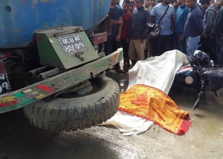 काठमाडौं । काठमाडौंको चोभारमा पानि ट्यांकरले मोटरसाइकललाई ठक्कर दिँदा एकको मृत्यु भएको छ । बा