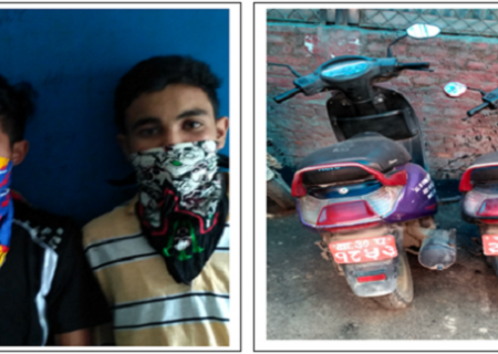 काठमाडौं । काठमाडौंको शंखमुलस्थित सडकमा पार्किङ गरी राखेको स्कुटर चोरी गर्ने दुई जनालाई प्रहरीले पक्राउ