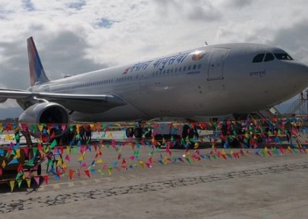 काठमाडौँ : राष्ट्रिय ध्वजावाहक नेपाल वायुसेवा निगमले खरिद गरेको २ सय ७४ सिट क्षमताको विमान 'अन्नपूर्ण' काठमाडाैंस्थित