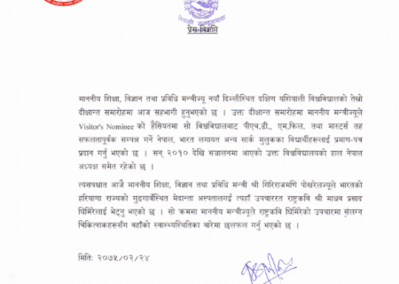 काठमाडौँ – शिक्षा, विज्ञान तथा प्रविधिमन्त्री गिरिराजमणि पोखरेल नयाँ दिल्लीस्थित दक्षिण एसियाली विश्वविद्यालयको तेस्रो दीक्षान्त