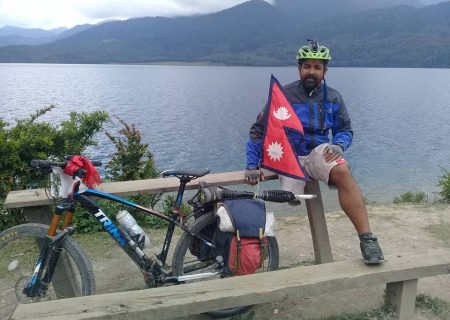सुर्खेत–एउटै खुट्टाले साइकल चलाएर प्रदेश नम्बर ७ बाट एक साईकल यात्री कर्णाली प्रदेशको रारा पुगेका