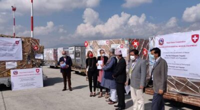 काठमाडौं । स्वीजरल्याण्ड सरकारबाट सहायता स्वरूप ९४ करोड बराबरको स्वास्थ्य सामाग्री आज नेपाल आइपुगेको छ
