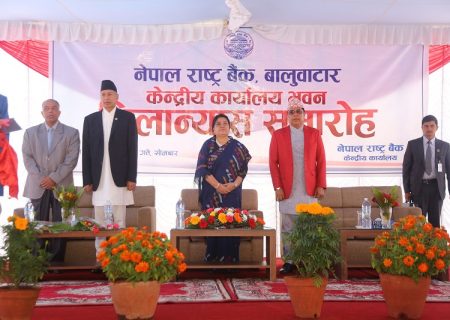 काठमाडौं । राष्ट्रपति विद्यादेवी भण्डारीले बालुवाटारस्थित नेपाल राष्ट्र बैंक केन्द्रीय कार्यालयको नयाँ भवनको आज एक