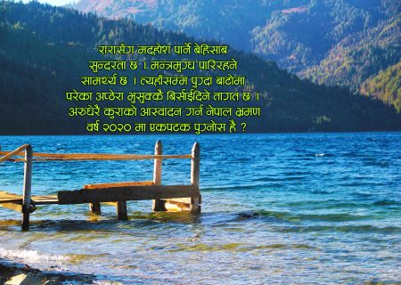 काठमाडौं । सरकारले भ्रमण वर्ष २०२० मा २० लाख पर्यटक नेपाल भित्र्याउने लक्ष्यका साथ शुरु
