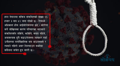 काठमाडौं । कोरोना भाइरसका कारण सारा विश्व लगायात नेपालपनि आक्रान्त छ । स्वास्थ्य तथा जनसंख्या