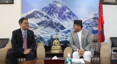 काठमाडौं । राष्ट्रियसभाका अध्यक्ष गणेशप्रसाद तिमिल्सिनासँग नेपालका लागि गणतन्त्र दक्षिण कोरियाका राजदूत पार्क चोंग सुकले