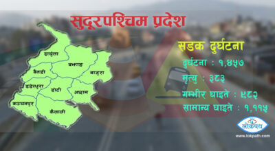 काठमाडौं । सुदूरपश्चिम प्रदेशमा हरेक वर्ष सडक दुर्घटनाबाट ज्यान गुमाउनेको संख्या बढ्दै गएको तथ्यांकले देखाएको