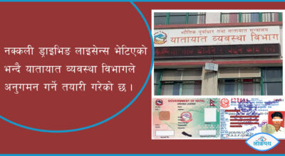 यातायात व्यवस्था विभागले २० देखि २५ प्रतिशत लाइसेन्स नक्कली भएको आशंका गरेको छ । दैनिक