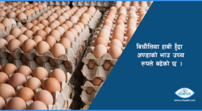 पछिल्लो समय कुखुराको अण्डाको भाउ हालसम्मकै उच्च रूपले वृद्धि भएको छ । बिचौलिया हाबी हुँदा