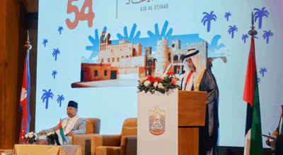 काठमाडौं । उपराष्ट्रपति रामसहायप्रसाद यादव संयुक्त अरब इमिरेट्स (युएई)को ५४औँ राष्ट्रिय दिवसका अवसरमा शनिबार साँझ
