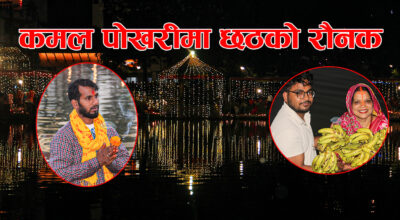 काठमाडौं । आज छठ पर्वको तेस्रो दिन काठमाडौंको कमल पोखरीमा सूर्यदेवको आराधना, उपासना र पूजा गरी