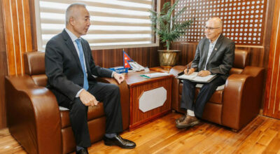 काठमाडौं । अर्थमन्त्री रामेश्वरप्रसाद खनाल र नेपालका लागि जापानका राजदूत मायदा तोरुबीच आज मन्त्रालयमा शिष्टाचार