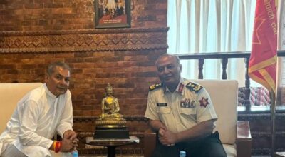काठमाडौं । मेडिकल व्यवसायी दुर्गा प्रसाईँले प्रधानसेनापति अशोकराज सिग्देलसँग छलफल गरेका छन् । प्रसाईँले बुधबार