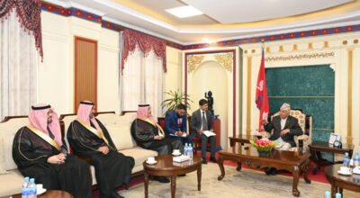 काठमाडौं। राष्ट्रपति रामचन्द्र पौडेलसँग आज राष्ट्रपतिभवनमा नेपालका लागि साउदी अरबका राजदूत साद अबुहमिदले बिदाइ भेट