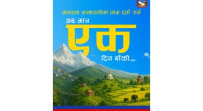 काठमाडौं । निर्वाचनको लागि मतदाता नामावलीमा नाम दर्ता गराउन मात्र १ दिन बाँकी रहेको छ