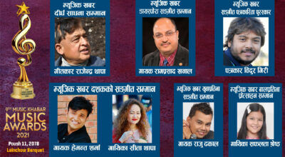 काठमाडौं । गीतकार राजेन्द्र थापालाई नवौं म्यूजिक खबर म्यूजिक अवार्ड २०२१ मा ‘दीर्घ साधना सम्मान’