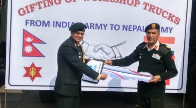 काठमाडौं । भारतीय सेनाले नेपाली सेनालाई टाटा एलपिटिए १६२८ वर्कशप ट्रकहरु उपहारस्वरुप प्रदान गरेको छ