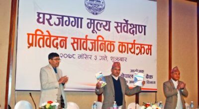 नेपालमा घरजग्गाको मूल्य २६.४५ प्रतिशतले बढेको एक अध्ययनले देखाएको छ। नेपाल राष्ट्र बैङ्कले पहिलो पटक