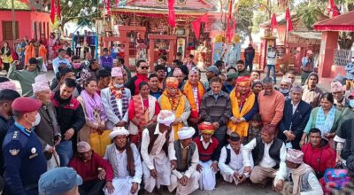 डोटीको प्रशिद्ध शैलेश्वरी मन्दिरमा आएका नेपाल कम्युनिष्ट पार्टी (एकीकृत समाजवादी) का अध्यक्ष माधवकुमार नेपाल