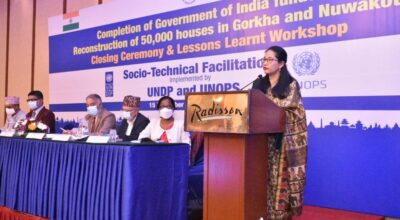 काठमाडौं । भारत सरकारको सहयोगमा नुवाकोट र गोरखा जिल्लामा ५० हजार आवास पुनर्निर्माण कार्य सम्पन्न