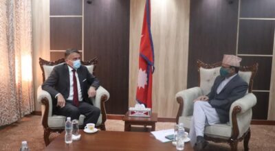 काठमाडौं । रक्षामन्त्री डा. मिनेन्द्र रिजाल र संयुक्त राष्ट्र संघका सहायक महासचिव क्रिस्चियन एफ सान्डर्सबीच