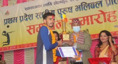 धनगढी । धनगढीमा भएको प्रथम प्रदेश स्तरीय पुरुष भलिबल प्रतियोगिताको उपाधी डोटीले जितेको छ ।