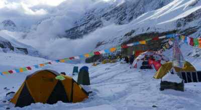 गलेश्वर । खराब मौसम र हिमपातका कारण धवलागिरि हिमाल आरोहणमा गएका आरोहीहरु आधार शिविरमा पुगेर