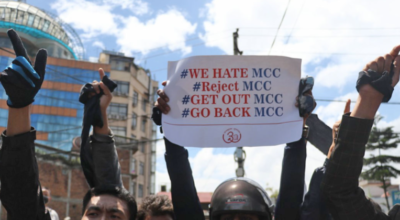 काठमाडौं । त्रिभुवन अन्तर्राष्ट्रिय विमानस्थल अगाडी अमेरिकी सहयोग मिलिनियम च्यालेन्ज कर्पोरेशन (एमसीसी) विरुद्ध प्रदर्शन गर्ने